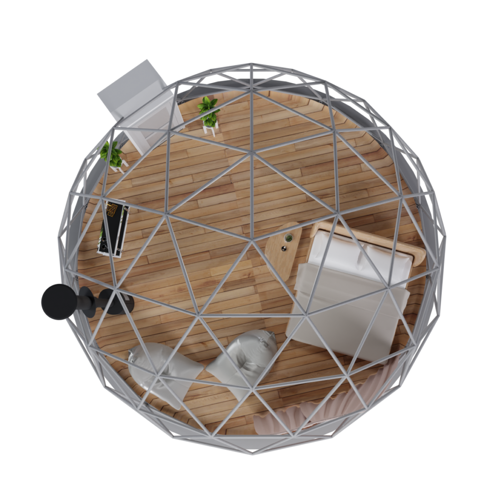 Nasze namioty kopułowe dają wręcz nieograniczone możliwości wyposażenia wnętrz. Często ograniczeniem jest jedynie nasza wyobraźnia. Z nami możesz w pełni spersonalizować swój namiot – dopasujemy się do Twojej wizji, aby stworzyć idealną przestrzeń. Przemyślane rozplanowanie powierzchni pozwala cieszyć się komfortem, niemal tak samo dużym jak w luksusowym apartamencie. W namiocie możesz bez problemu wstawić każdy rodzaj mebli, a nawet urokliwy piec typu koza, który nada pomieszczeniu jeszcze przyjemniejszy klimat.