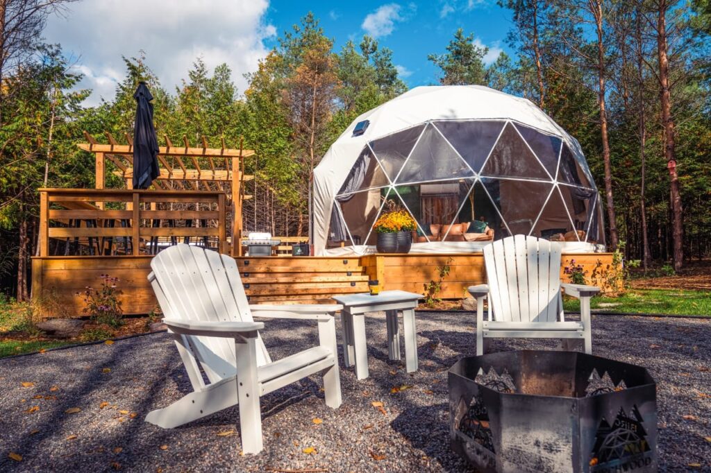 Nasze namioty sferyczne umożliwią Ci stworzenie w prosty i szybki sposób swojej cichej, zielonej oazy. Możesz wzbogacić swój glamping np. o banię, miejsce na ognisko lub saunę. Stwórz strefę relaksu dla siebie, swojej rodziny lub letników.